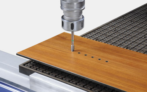 განდეტალება, ხვრეტა და დაღარვა („დაფრეზვა“) ნებისმიერ ფორმატზე, ერთ სამუშაო ციკლში CNC განდეტალება•მოათავსეთფილა,გაუშვითგანდეტალებისპროგრამა-გაშვებისშემდეგ“profitH10”მუშაობსოპერატორისგარეშე. დამატებით რაიმე ოპერაციები ან მანიპულაციები საჭირო არ არის.•ნებისმიერი ფორმის განდეტალება: შესაძლებელია ნებისმიერი კონტური.•ნესტინგის თანამედროვე ტექნოლოგია საშუალებაა დანაკარგის მინიმიზაციისთვის•დამუშავებულიდეტალებიშესაძლებელიაგადაიტანოთწიბოსდასაკრობდანადგარზესარანდი(Фуговальный;Premilling) აგრეგატების ჩართვის გარეშე CNC ბურღვა•დეტალის ხელახალი მიწოდება ან სხვა საბურღი დანადგარი საჭირო აღარ არის.•დროის საკმაო ეკონომია ჭრის და ბურღვის ოპერაციების ერთიანი ციკლის გამო.•კონკრეტული ტიპის ნახვრეტის ან ნახვრეტების წყების სრულდება ჭრის ოპერაციამდე და შემდგომ.•მზა დეტალები უკვე მზადაა წიბოს დასაკრობ დანადგარზე გადასატანად. CNC დაღარვა (“დაფრეზვა”)•მატრიცულიმსამუშაომაგიდაშესაძლებელიააღიჭურვოსვაკუუმმიმკრობებით;დაღარვაშესაძლებელიაგანხორციელდეს სტანდარტულ დანადგარზე კონსოლური ტიპის მაგიდაზე.•დაღარვის ოპერაციისთვის დანადგარი აღჭურვილია ინსტრუმენტების 36 ადგილიანი შეცვლის სათავსოთი.