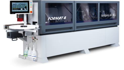 FORMAT4 მარკის tempora F600 glueBox აგრეგატით: PUR დამუშავება წებოს ავზის გარეშე. რევოლუციურად ჩქარი, სუფთა და ეკონომიურად მომგებიანი დამუშავება.